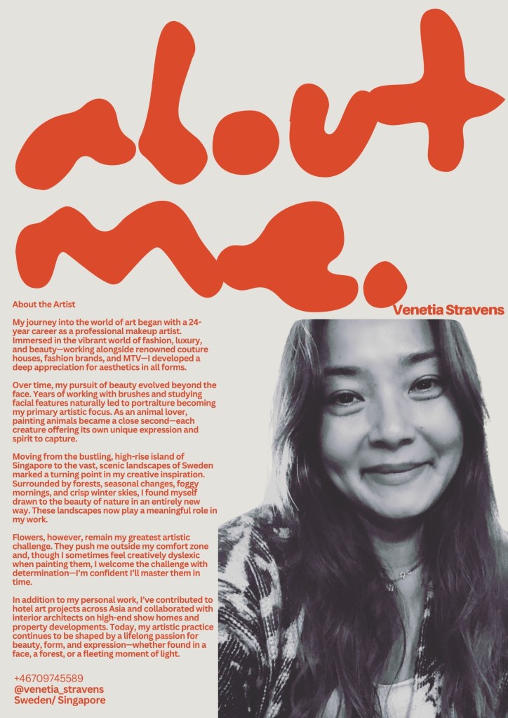 In addition to my personal work, I’ve contributed to hotel art projects across Asia and collaborated with interior architects on high-end show homes and property developments. Today, my artistic practice continues to be shaped by a lifelong passion for beauty, form, and expression—whether found in a face, a forest, or a fleeting moment of light.