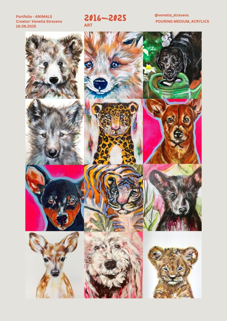 Over time, my pursuit of beauty evolved beyond the face. Years of working with brushes and studying facial features naturally led to portraiture becoming my primary artistic focus. As an animal lover, painting animals became a close second—each creature offering its own unique expression and spirit to capture.